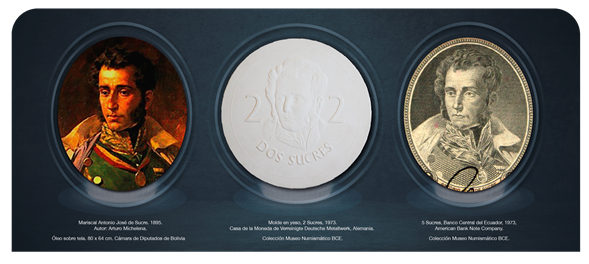 La moneda de 2 sucres de 1973, nos permite pensar también sobre el retrato y las representaciones de la figura del Mariscal Sucre. Desde 1884 cuando se crea la moneda “sucre” el retrato del Mariscal mantiene una forma única en la numismática ecuatoriana, salvo el billete de 5 sucres que circuló a partir de 1950 y esta moneda. Para Carmen Fernández Salvador (2015), la figura de Sucre se construyó como “padre de la patria” solamente a finales del siglo XIX, cuando la moneda pasó a tener su nombre y con toda una serie de conmemoraciones a finales de 1880 de los gobiernos progresistas por exaltar su figura a través de esculturas públicas.