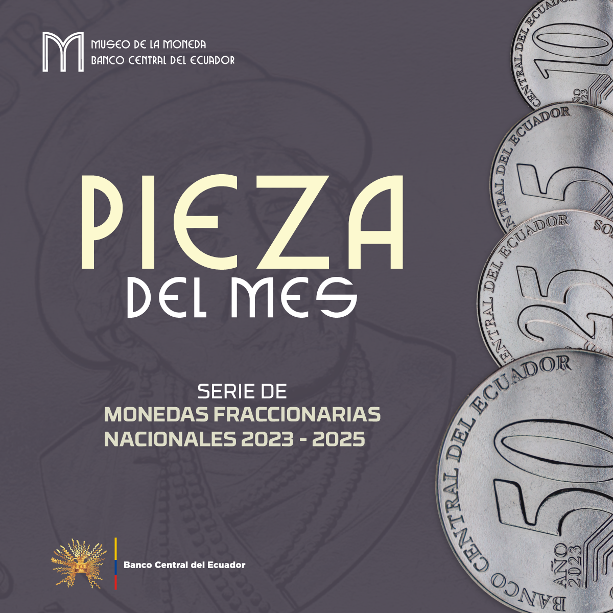 Como pieza del mes del Museo de la Moneda presentamos a la serie de ocho monedas fraccionarias, cuyo programa de acuñación va desde el 2023 al 2025 en material acero-níquel. Estas monedas se encuentran exhibidas en las salas de las sedes en Quito y Cuenca.